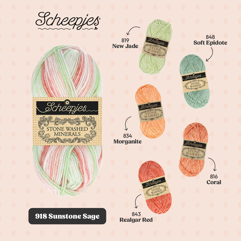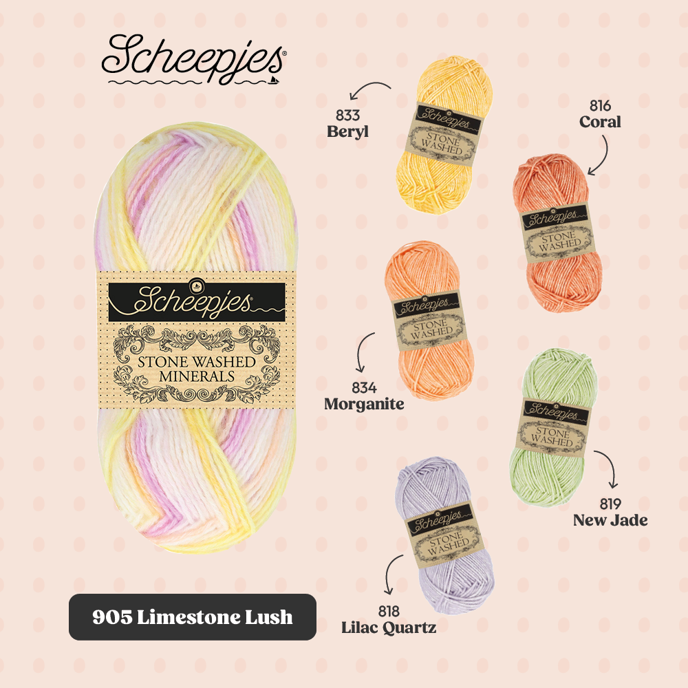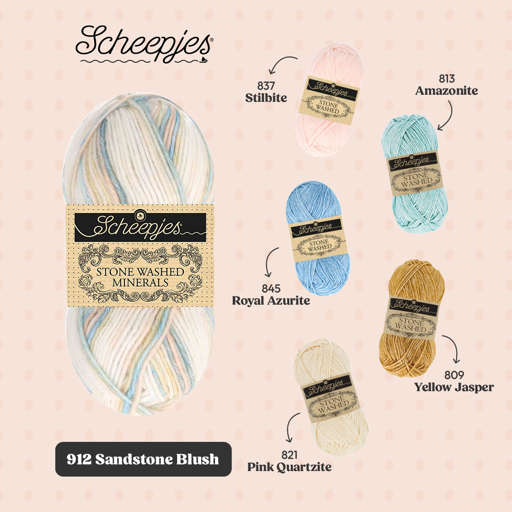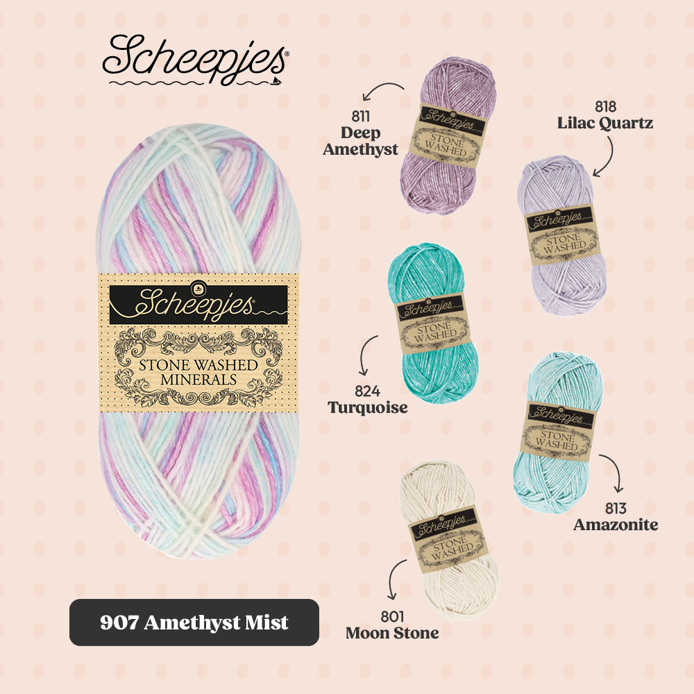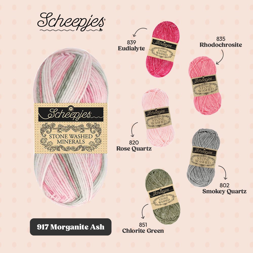 Met oog op crafters die graag hun Stone Washed garencollectie willen uitbreiden, biedt de Minerals serie 20 kleurstellingen die bestaan uit 5 verschillende kleuren uit de Stone Washed collectie. De kleuren kunnen dan ook perfect worden gecombineerd binnen bestaande patronen en zo kun je items creëren die jouw persoonlijke stijl weerspiegelen.